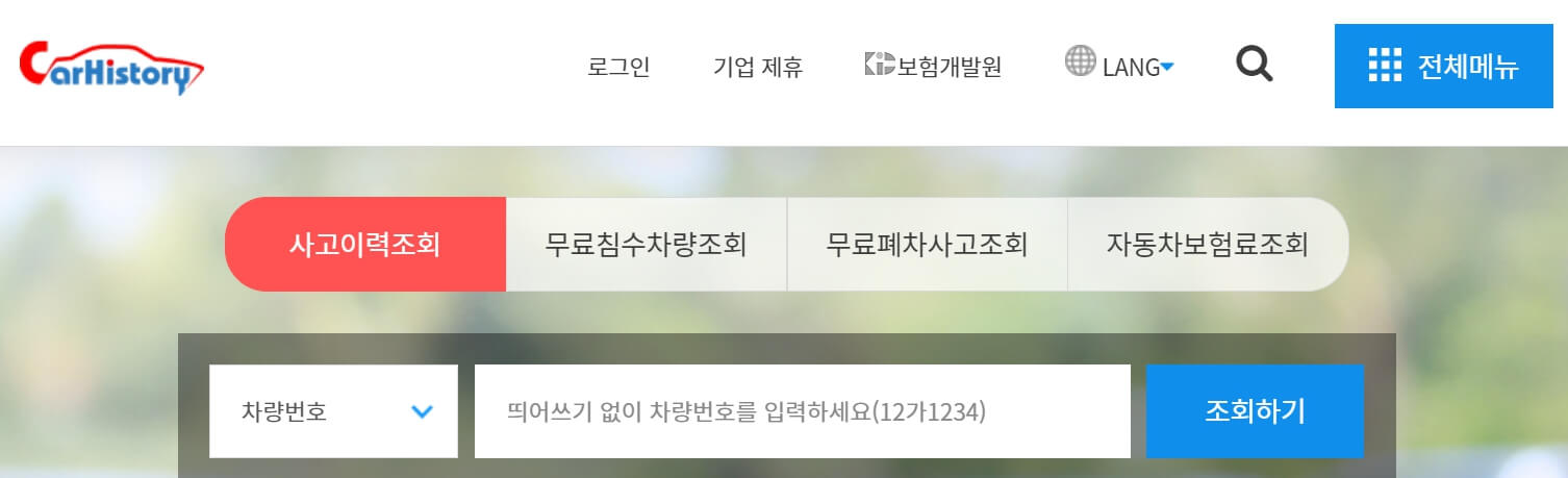 카히스토리에서는 침수차량 조회와 폐차사고조회를 무료로 서비스 제공합니다.
